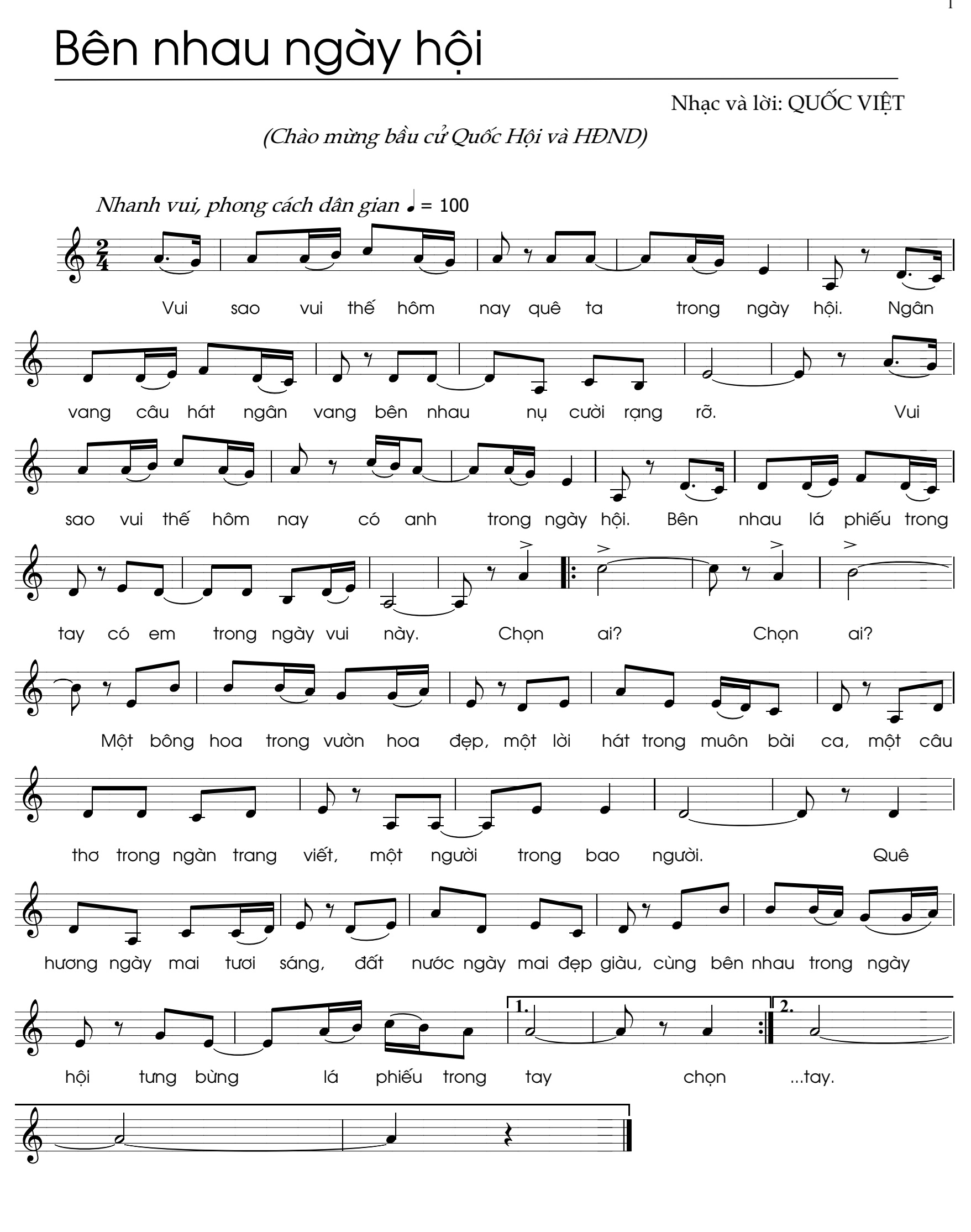 Tác phẩm: Bên nhau ngày hội (chào mừng bầu cử Quốc hội và Hội đồng Nhân dân)Được đăng: 12 Tháng 3 2026 | Tác giả: NS. Quốc Việt - Khoa Sư phạm | In bài này | Gửi Email bài này | Lượt xem: 54Tác phậm: Bên nhau ngày hội Nhạc và lời: Quốc Việt (Chào mừng bầu cử Quốc hội và Hội đồng Nhân dân) Các tin khácBộ câu hỏi học thuật để đánh giá khả năng của AI - 06/03/2026 15:32Phương pháp dạy học tích cực sau kỳ nghỉ Tết - 26/02/2026 17:16Trò chơi dân gian - Mạch nguồn nuôi dưỡng tâm hồn và trí tuệ trẻ thơ - 16/02/2026 09:04Những thay đổi "bước ngoặt" trong quy chế tuyển sinh đại học 2026: Thí sinh cần biết gì? - 15/02/2026 13:06Chi bộ Khoa Sư phạm nghiêm túc tham dự Hội nghị toàn quốc nghiên cứu, học tập, quán triệt Nghị quyết Đại hội XIV - 14/02/2026 07:02 Trang sau