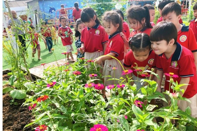 Không gian xanh luôn là môi trường lý tưởng để trẻ tham gia các hoạt động trải nghiệm ngoài trời